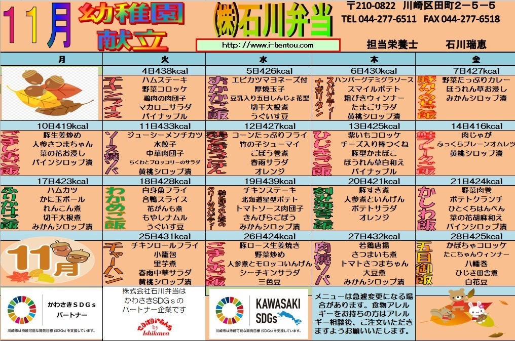 2025年 11月 幼稚園【きざみ食・お菓子なし】メニュー