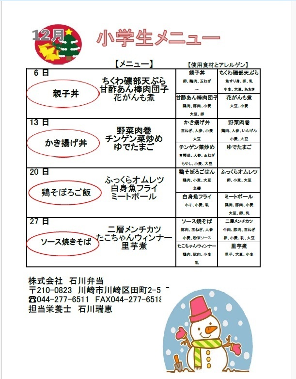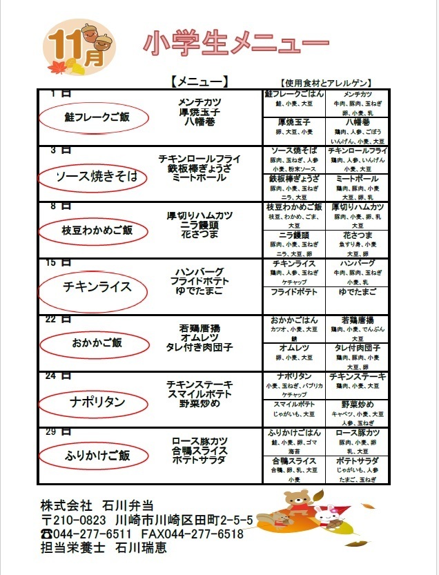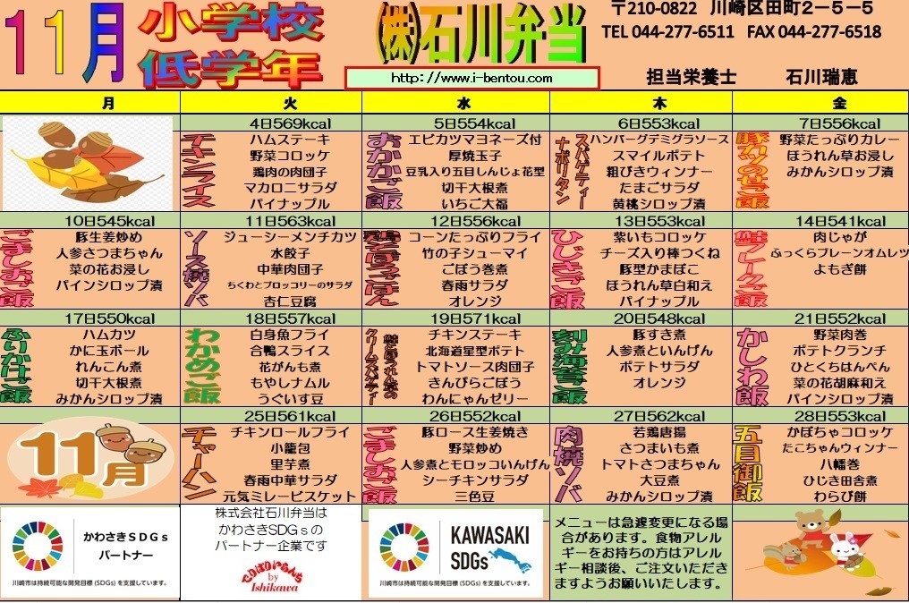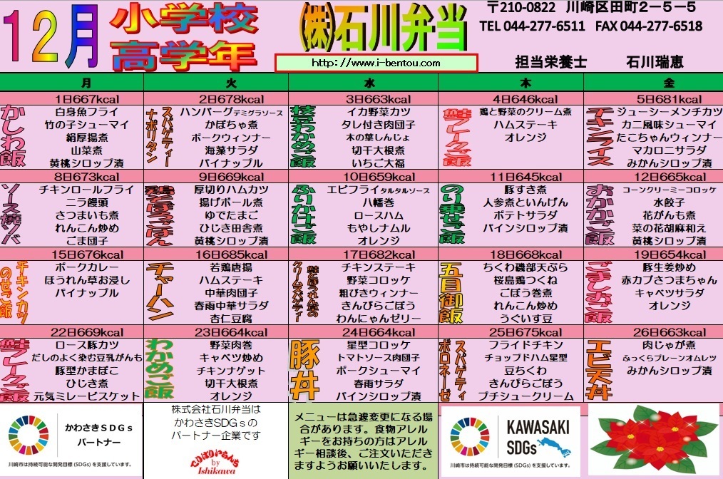 ★土曜日・祝日のメニューはこちらの下にございます。(ご契約団体様のみ対応)