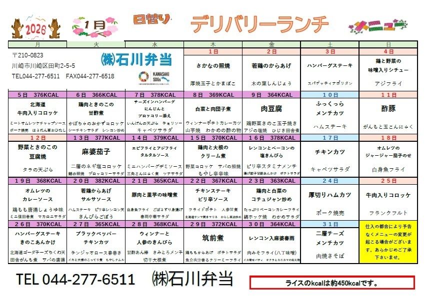 2026年 1月 デリバリーランチメニュー