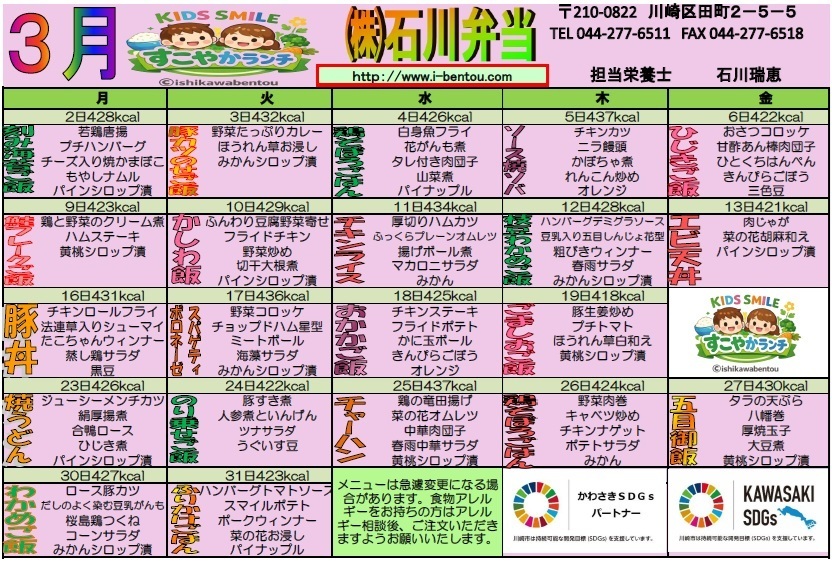 2025年 3月 幼稚園【げんきランチ普通食】メニュー