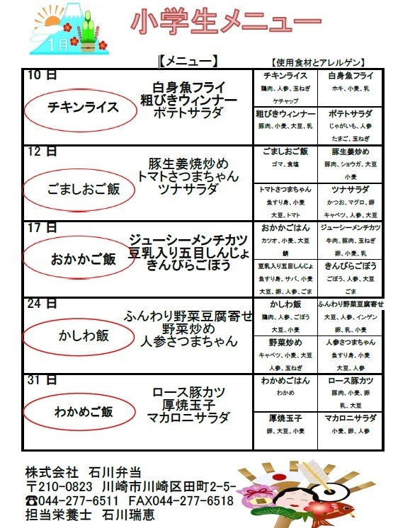 ★土曜日・祝日のメニューはこちらの下にございます。(ご契約団体様のみ対応)